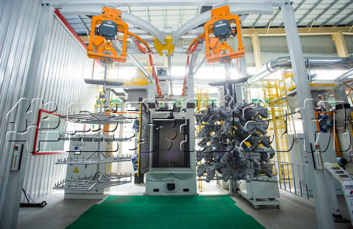 首先這款Q3710吊鉤式拋丸機(jī)相對(duì)于其他的吊鉤式拋丸機(jī)來(lái)說(shuō)體積要更小一點(diǎn),不論是運(yùn)輸還是拆卸清理都非常方便。其次如果是安裝的話我們能看到機(jī)器本身非常緊湊,不會(huì)出現(xiàn)安裝縫隙大進(jìn)而影響產(chǎn)品工作效率的現(xiàn)象。升降以及旋轉(zhuǎn)的掛鉤可以讓零件任何一個(gè)表面都被清理到。